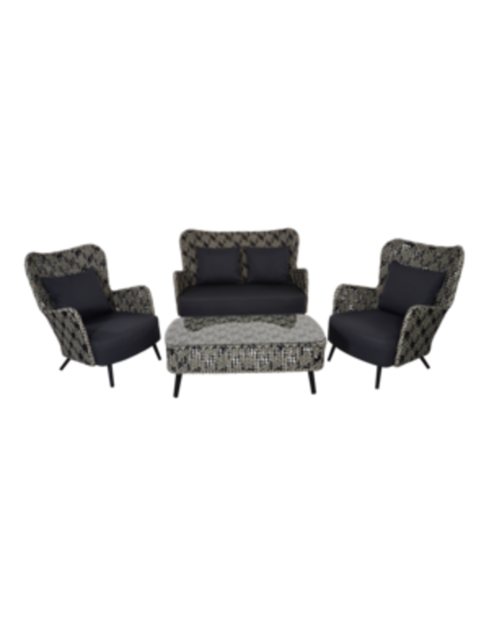 Loungeset Toulouse - 100% all weather kussens - 4-delig -zwart-wit-wicker