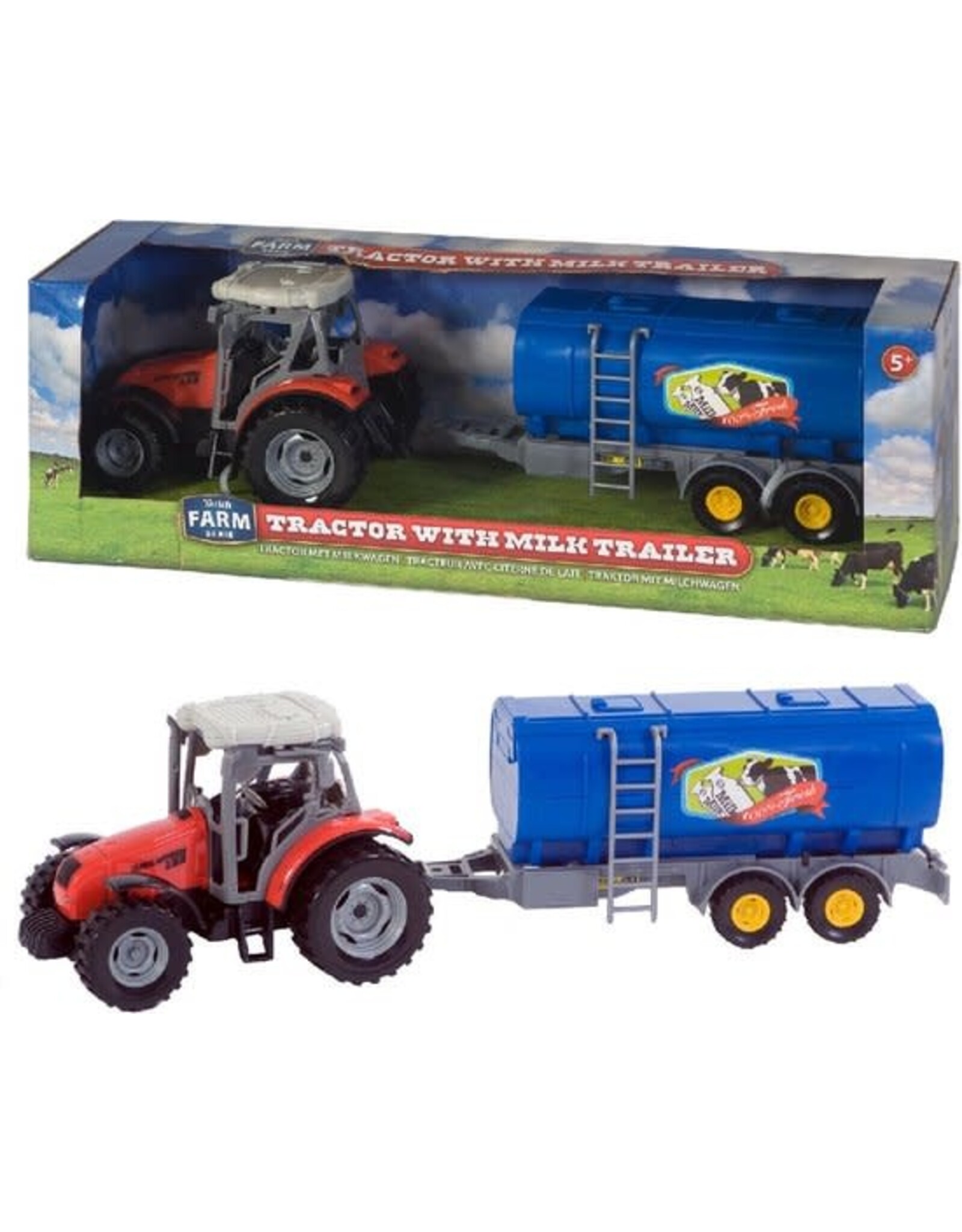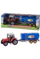Met deze speelgoed tractor met aanhanger steel je de show. Deze tractor heeft een melkwagen als trailer en is van het merk Dutch Farm. Deze echte Nederlandse tractor komt in mooie display verpakking en heeft een schaal van 1:32. De speelgoed trekker is vervaardigd van kunststof en voorzien van robuuste banden. De melktrailer is gemakkelijk te koppelen en te ontkoppelen. Er zijn veel verschilende tractoren binnen de Dutch Farm Line. Verzamel ze allemaal en maak je boerderij compleet. Deze rode tractor met aanhanger is geschikt voor kinderen vanaf 5 jaar.