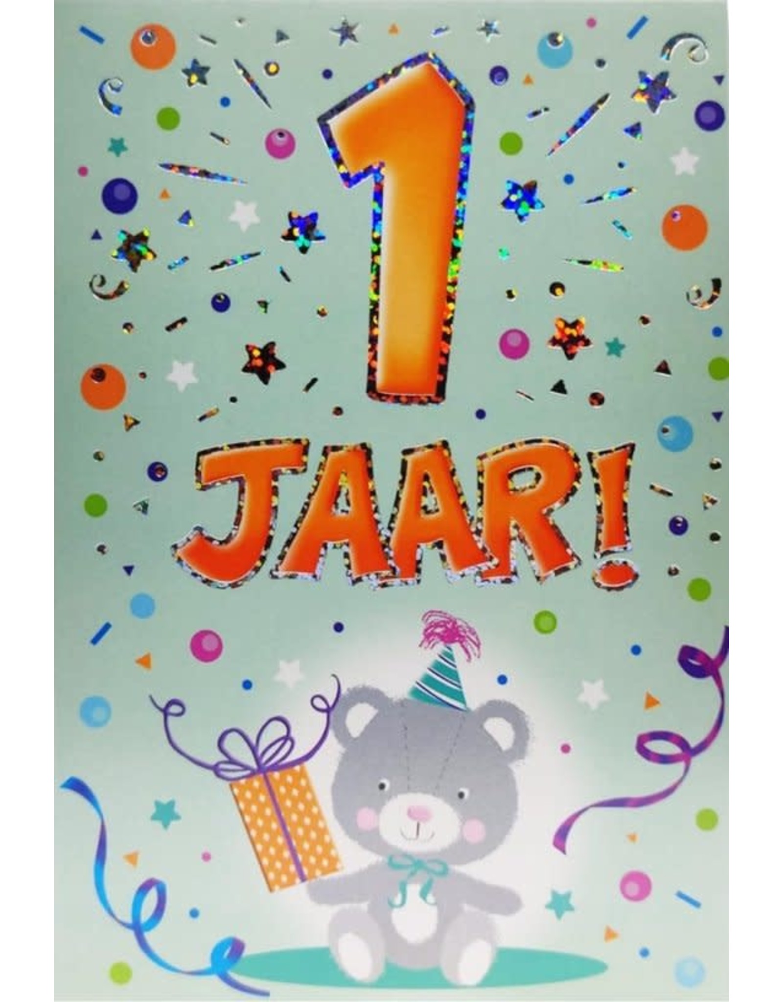 Verjaardagskaart 1 jaar met tekst (17 x 11,5 cm)