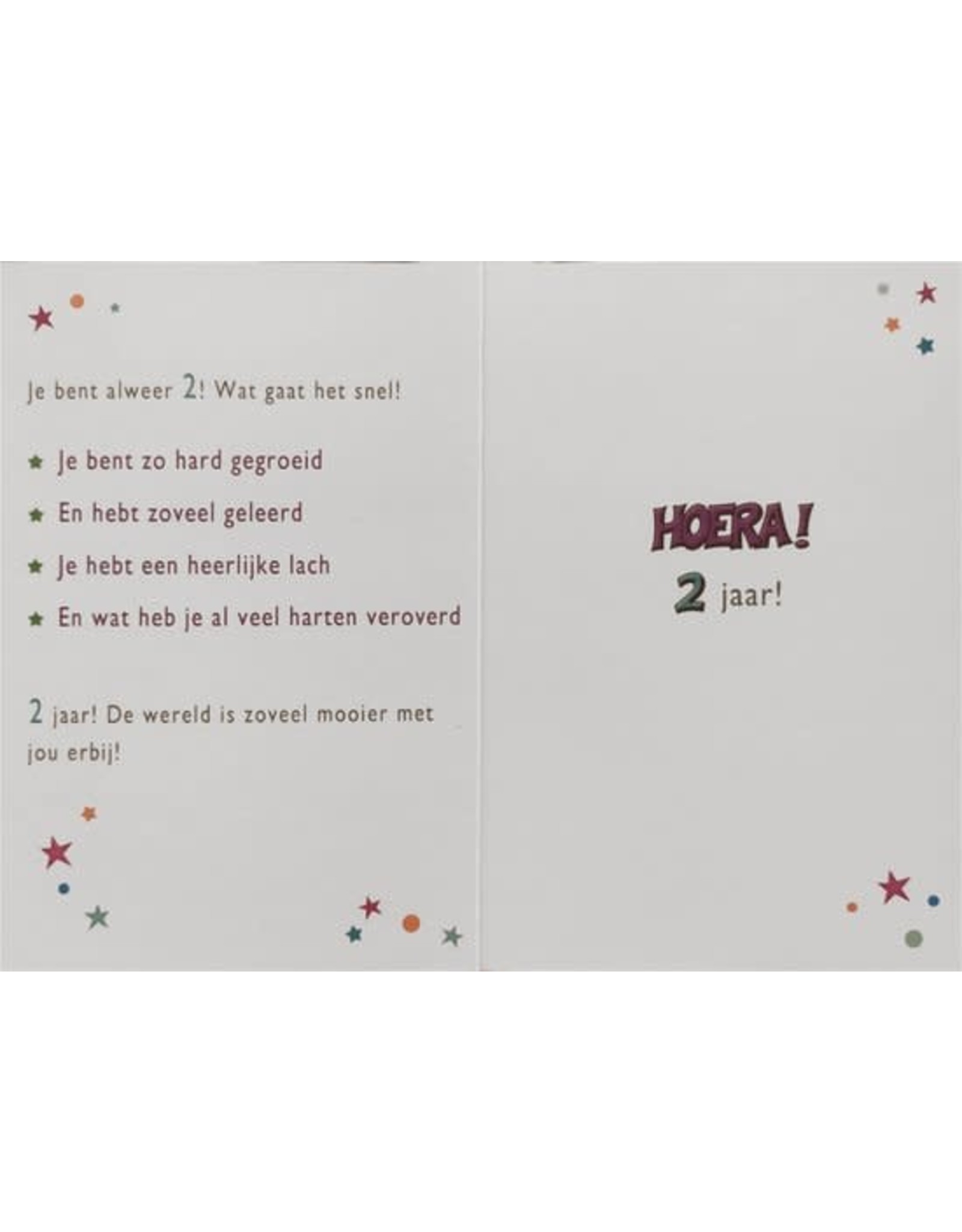 Verjaardagskaart 2 jaar met tekst 17 x 11,5cm)